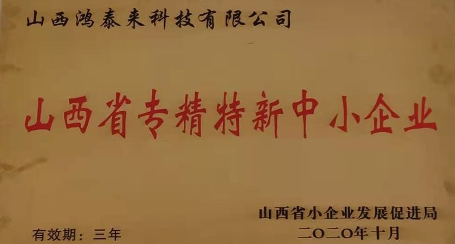 山西鸿泰来科技有限公司荣获山西省专精特新中小企业荣誉
