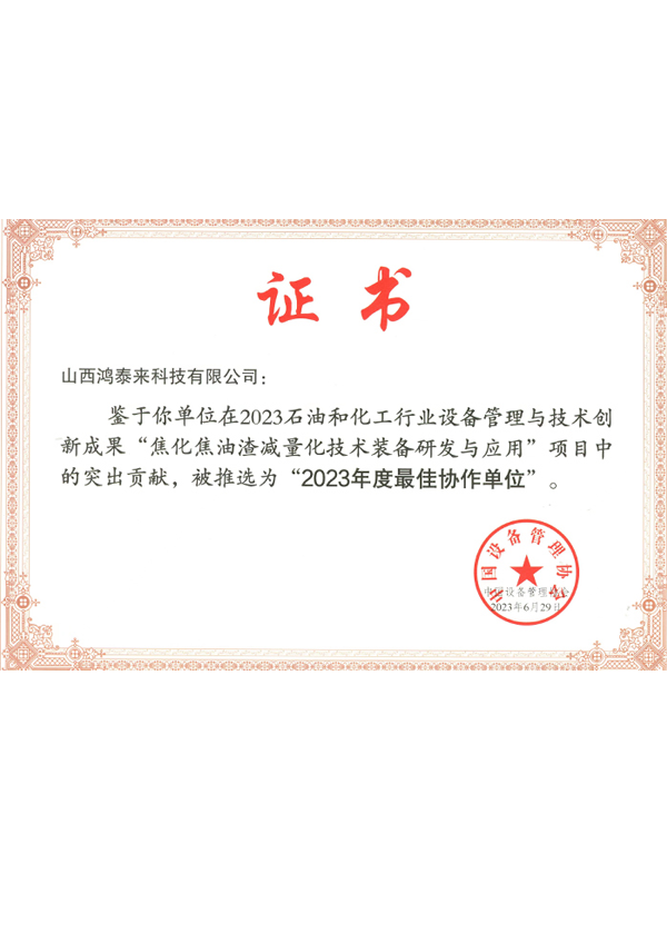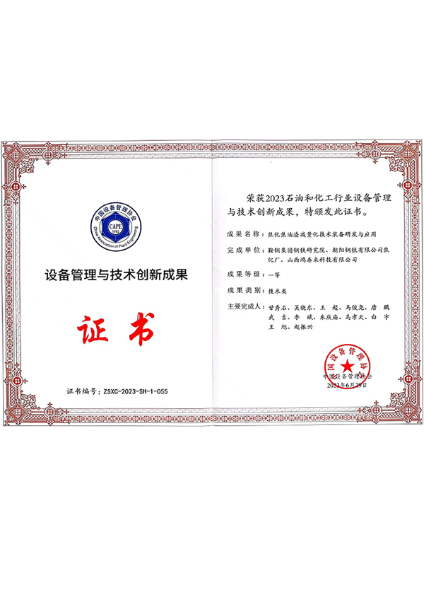 山西鸿泰来被推选为中国设备管理协会2023年度最佳协作单位,并荣获设备管理与技术创新成果一等奖