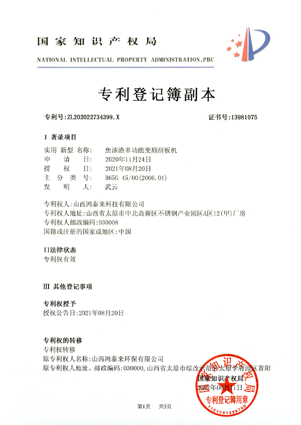 将分散排放的焦油渣采用密闭输送方式收集起来,达到完全避免零星落渣,操作地面干净,气体密封收集,统一输送集中存储的功能。焦油渣经过分离后可以回收其中的焦油,干渣粉送到煤场。可以彻底处理焦油渣。